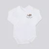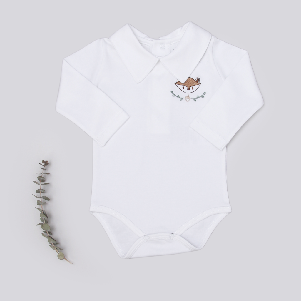 Body clásico con cuello, manga larga. En 100% algodón pima, perfecto para usarlo debajo de una chaqueta y lucir un look diferente . disponible en talla desde 0-3m a 9-12 meses.